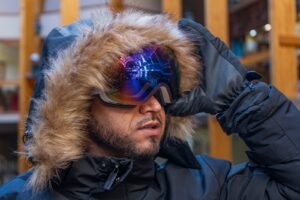 Lente simple de gran visión. Con marco robusto y resistente al frio. Con correa antideslizante de alta elasticidad.
