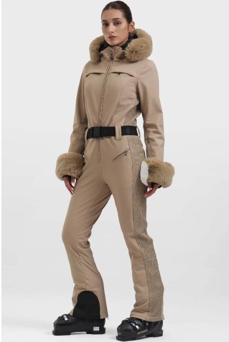 O macacão Ameli possui um generoso acabamento em pele sintética que adiciona um toque de elegância ao seu visual de esqui alpino. O acabamento removível em pele sintética oferece versatilidade de estilo, enquanto o tecido impermeável garante isolamento térmico. Além disso, o forro acolchoado mantém você aquecido nos dias frios na neve.